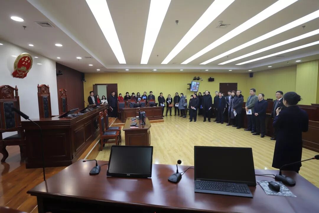 来到科技法庭,受邀人员观看干警对双庭审系统、双书记员同时记录、全程同步录音录像等信息化功能的演示,切身感受司法的公开透明。