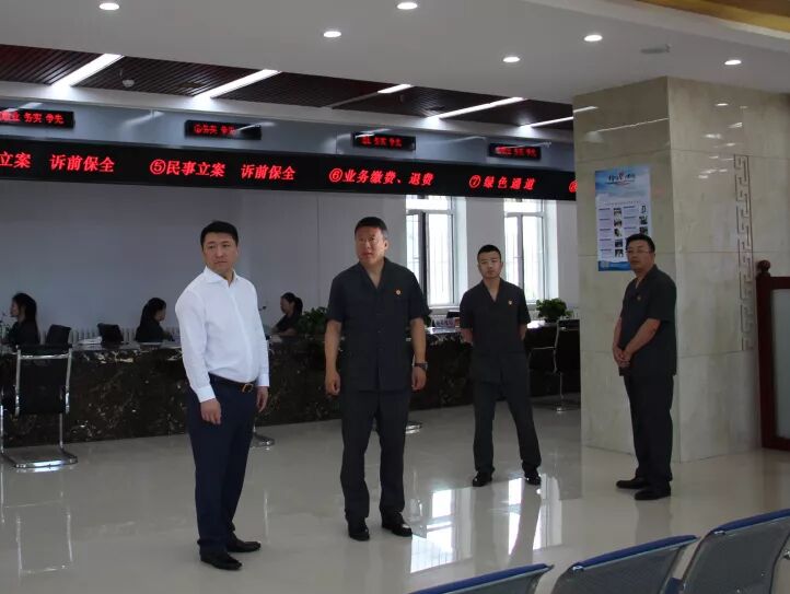 洛大雨一行实地考察杜尔伯特县法院新审判综合楼,先后来到诉讼服务中心、科技法庭、执行指挥中心、阅览室等场所了解情况,并与班子成员及部门负责人进行座谈。在听取杜尔伯特县法院工作情况汇报后,洛大雨对该院上半年工作成效表示肯定。