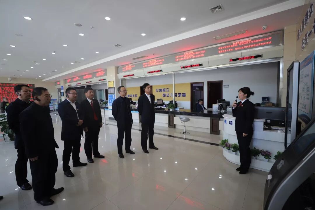 在讲解员的引导下,大家先后参观安检大厅、诉讼服务中心、阳光大厅、重大职务犯罪审判法庭、家事法庭、互联网法庭、荣誉室、执行指挥中心等场所。