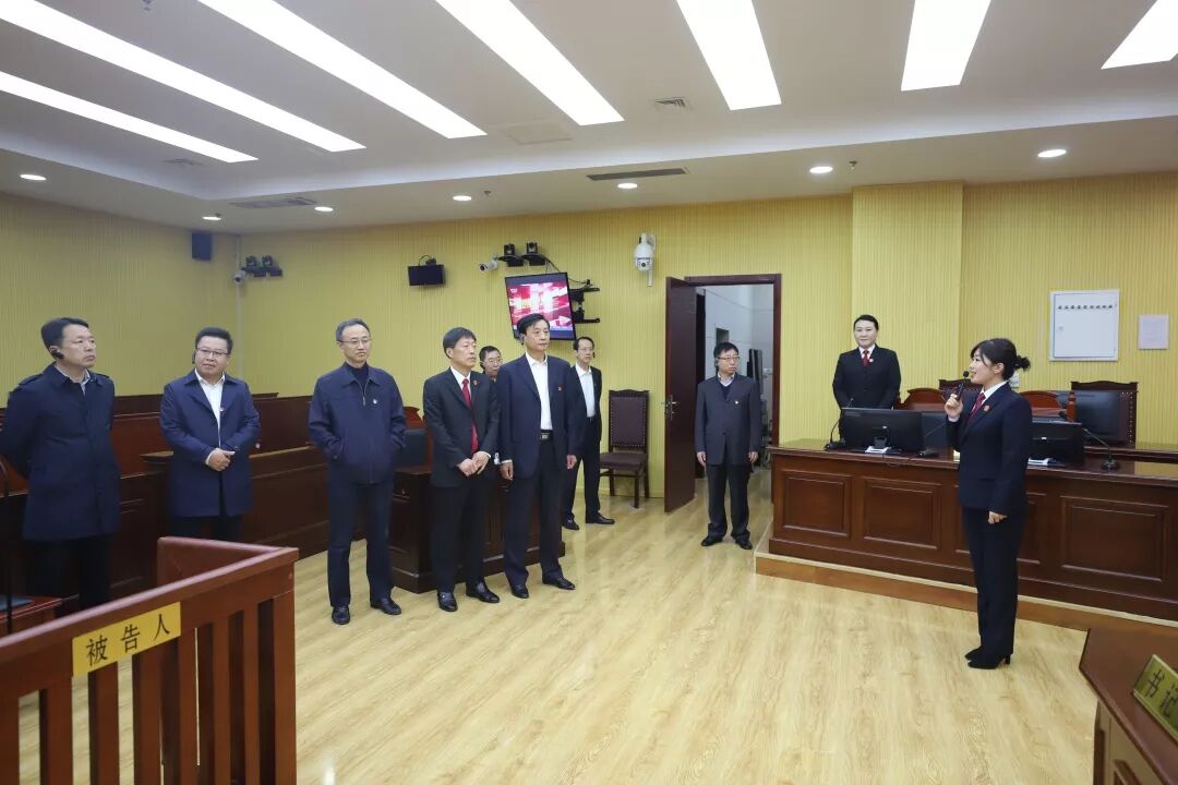 近日,市政府副秘书长张峰、范国文带领市政府办班子走进大庆中院,了解法院队伍建设、文化建设以及践行“打官司不求人”承诺等方面的有效举措。大庆中院党组副书记、副院长李树民陪同参观。
