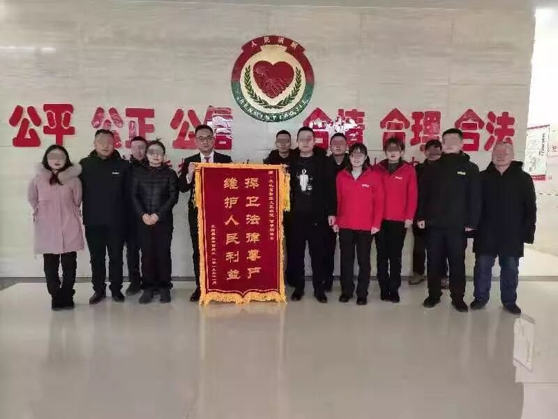 11月29日,员工代表一行10余人冒着寒风来到高新区法院,为贾李强送来一面印有“捍卫法律尊严 维护人民利益”的锦旗,对其耐心细致、认真负责的执行工作表示感谢。