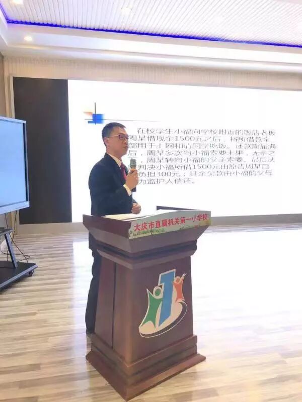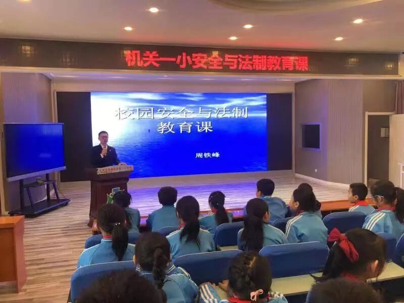 为加强青少年法治教育,培养青少年法治信仰,近日,大庆市中级人民法院来到市直属机关第一小学开展青少年法治教育基地“青春与法治同行”系列主题活动,民事审判二庭副庭长周铁峰以"校园安全与法制"为题作专题讲座。