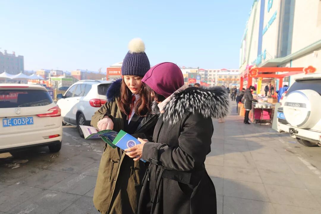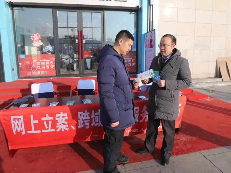 1月11日上午,在大庆中院的统一部署下,全市两级法院立案诉讼服务中心的干警牺牲周末休息时间,冒着严寒、踏着冰雪,走上街头开展网上立案、跨域立案集中宣传活动。