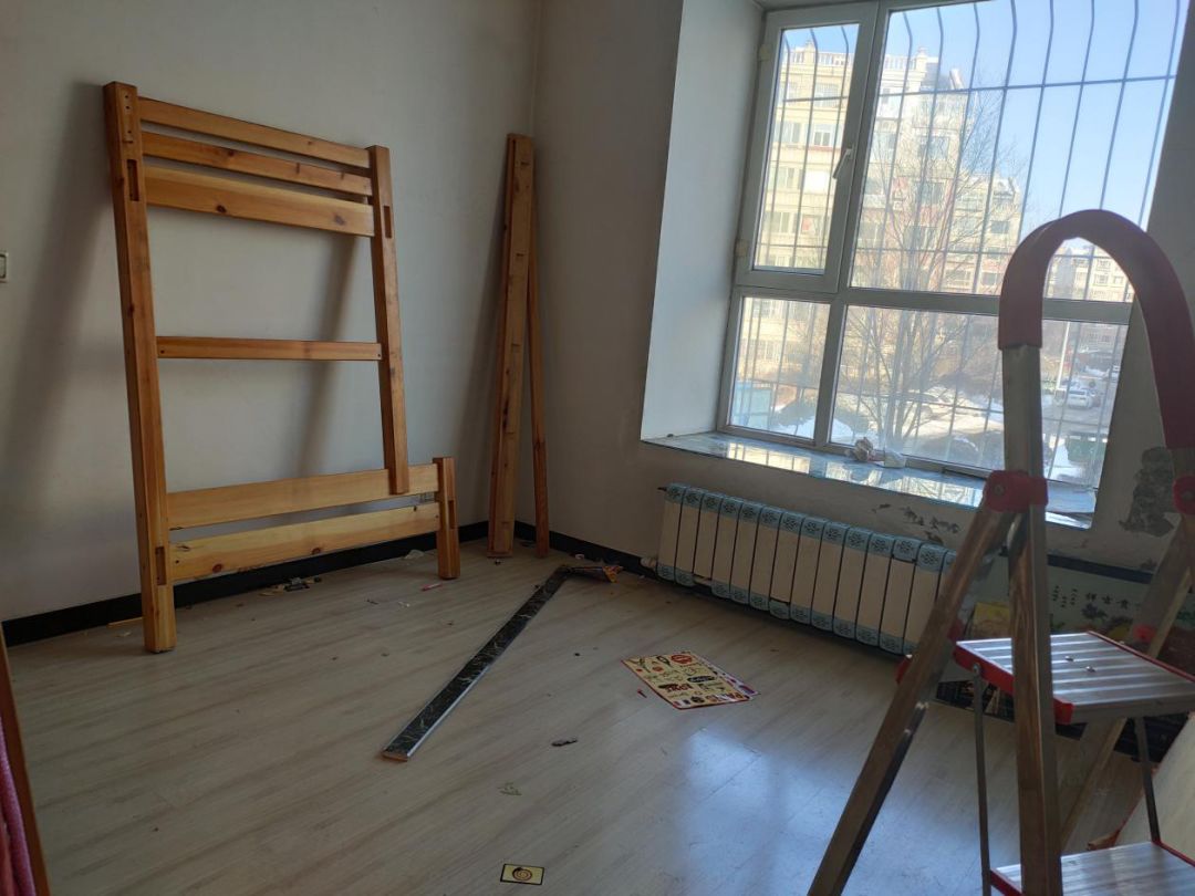 衣物被褥已经搬走,只剩下不便搬运的大件家具以及一些零散的物品。