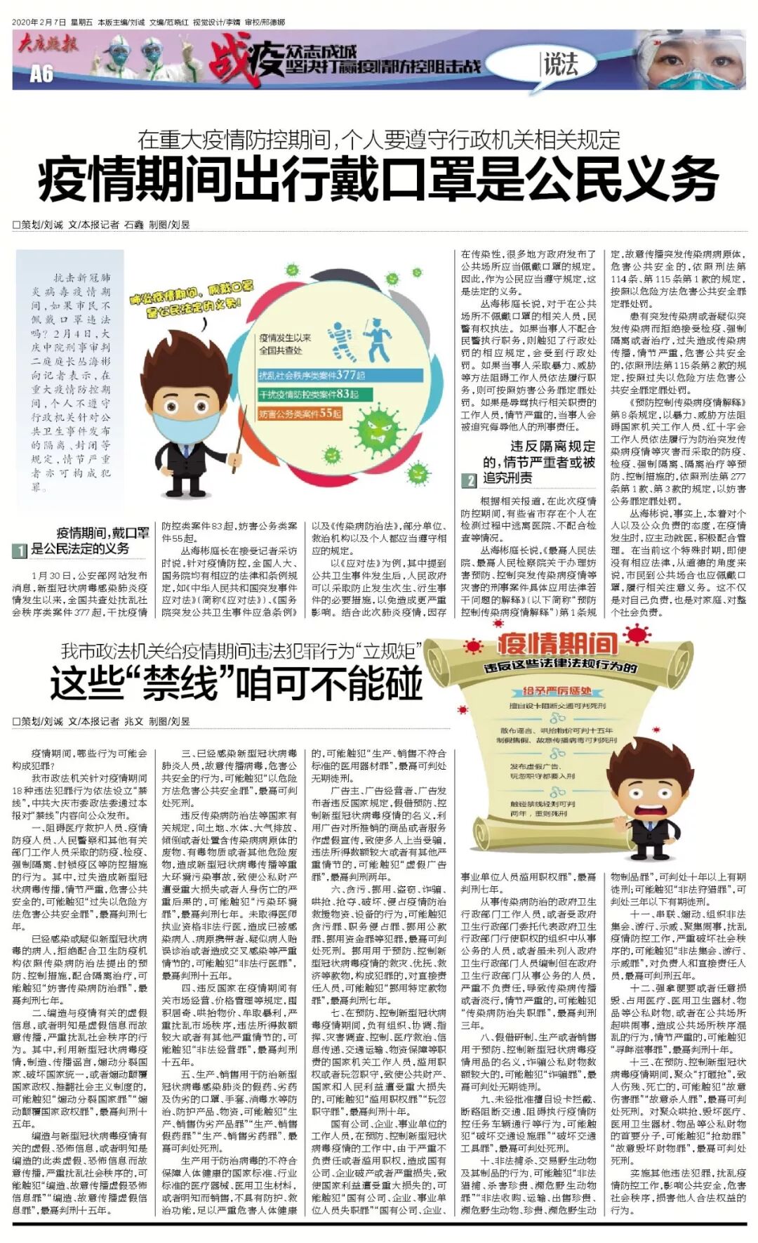 针对近期发生的多起市民外出不佩戴口罩,不配合测量体温甚至动粗事件,大庆市中级人民法院法官接受了《大庆晚报》记者的采访。