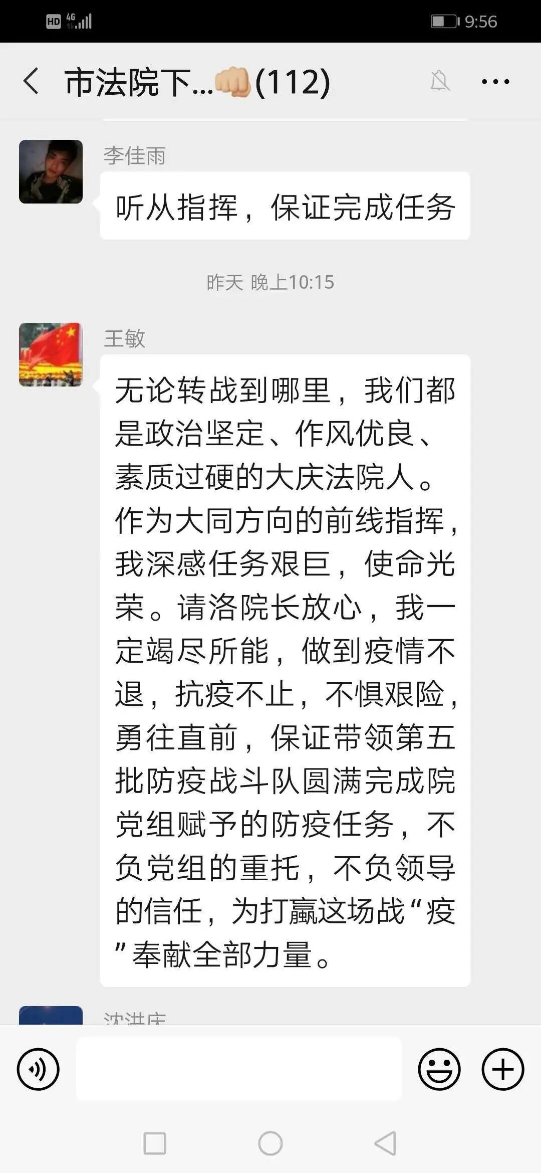 3月12日,大庆中院选派第五批预备抗疫队员,奔赴让胡路区、大同区参与联防联控工作。