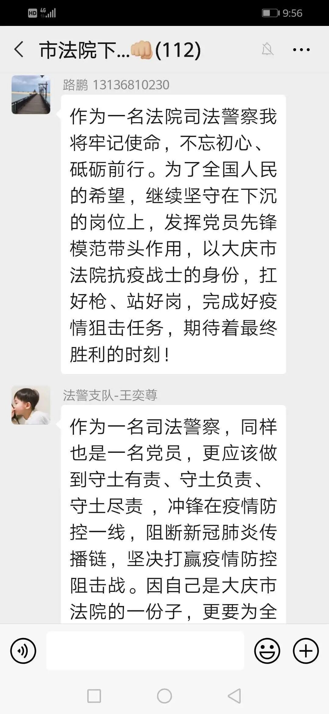 自2月13日以来,大庆中院已有五批干警积极投身到任务最艰巨、群众最需要的地方,全力做好所在街道、社区联防联控工作,以实际行动诠释法院人的坚守,彰显法院人的担当。