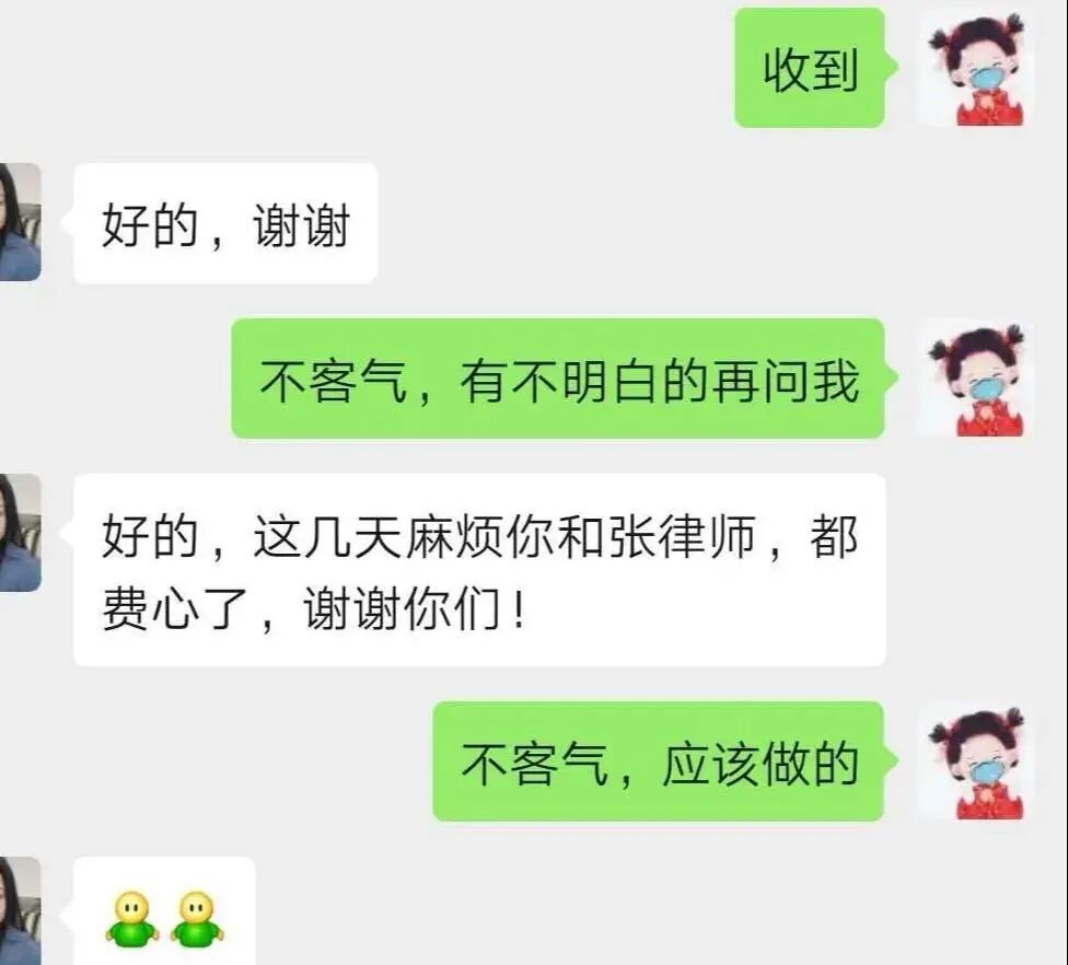 因现正处于疫情防控期间,在征得双方当事人同意后,刘春芳启用“云间开庭”,在双方当事人协商过程中耐心劝解,弥合分歧,提出建议。最终双方达成调解方案,案件圆满审结。当事人通过微信向刘春芳表达了谢意。