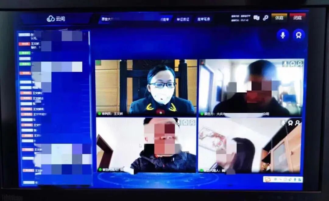 4月8日上午9时,庭审如期进行。法官在审判法庭、各方当事人分别在大庆、北京、吉林,四人四地同时登录“云间”网上庭审系统,由法官通过“多方视频”功能,在线邀请当事人视频开庭。在视频庭审中,法官核对了双方当事人身份,并进行法庭调查、举证质证、法庭辩论、最后陈述、法庭调解,直至宣布休庭,目前案件还在审理中。