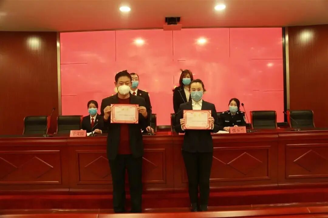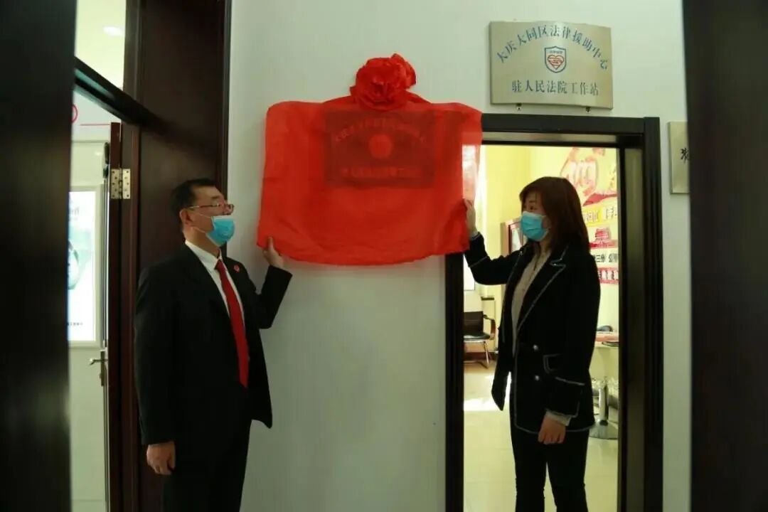 大同区法院党组书记、院长梁晓军和区司法局局长赵丽丽出席仪式,为“大庆市大同区人民调解中心驻人民法院调解工作室”揭牌,并为聘任的人民调解员颁发聘书。