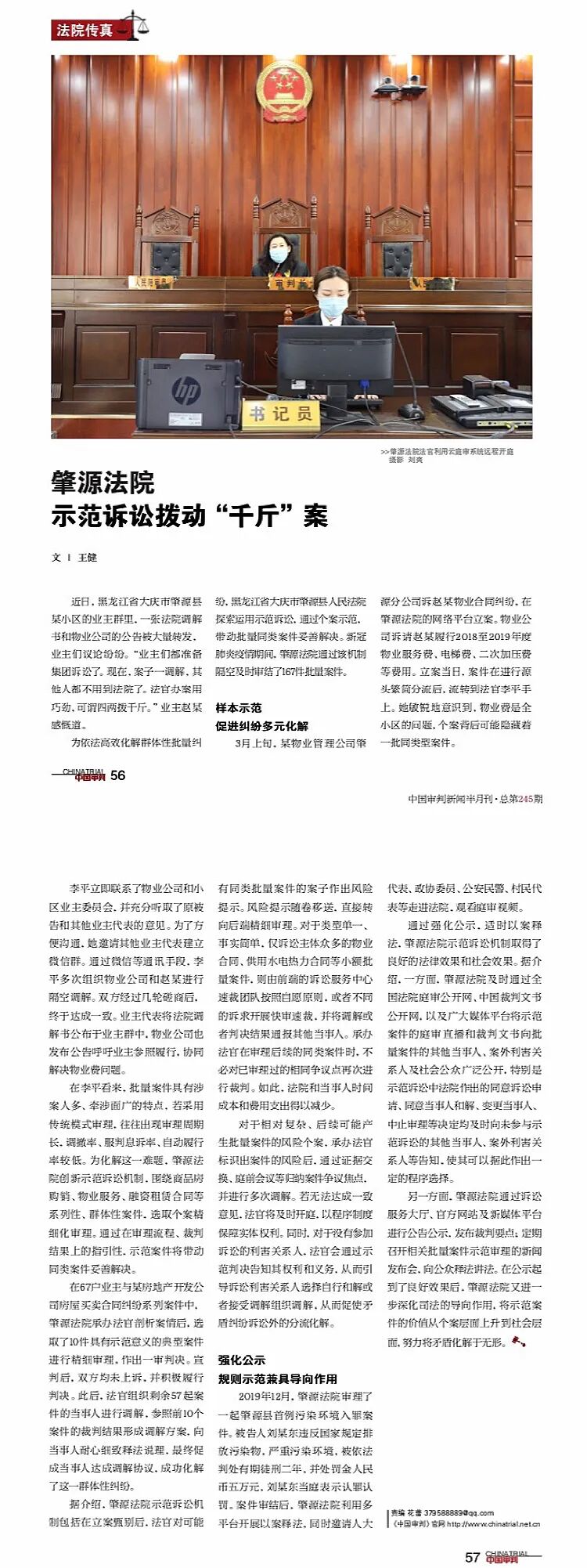 中国审判|肇源县法院示范诉讼“拨动”千斤案 发布时间:2020-04-22 08:58:29