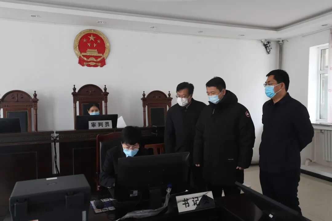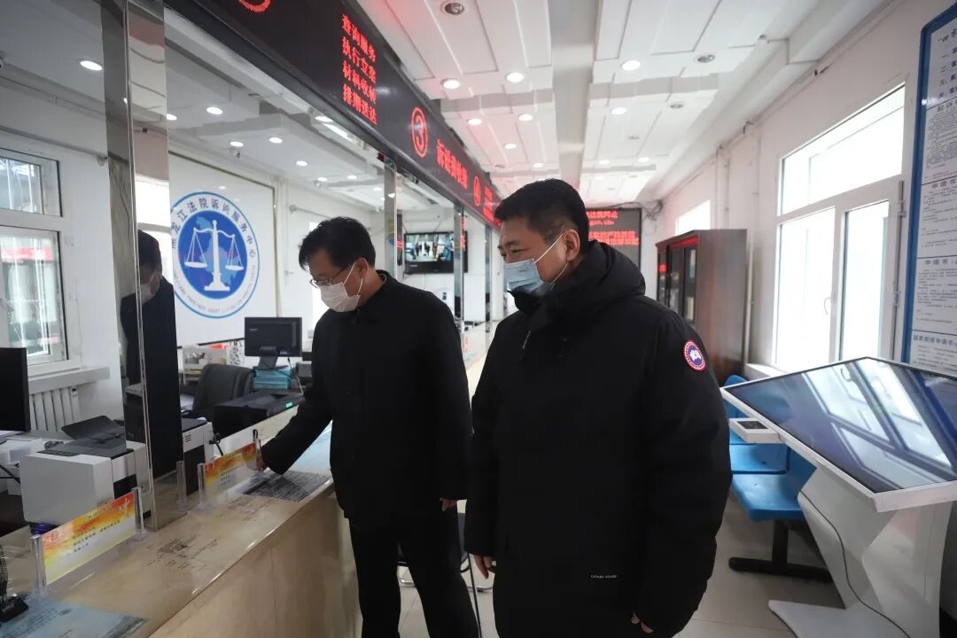 在红岗区法院,洛大雨走访诉讼服务中心、审判法庭等重点防疫场所,认真了解扫码、测温、戴口罩三项措施落实情况;仔细检查消毒制度安排、消毒用品准备和使用情况;详细询问红岗法院防疫物资配备、干警卫生防护以及疫情防控特殊时期审判执行工作安排等情况。