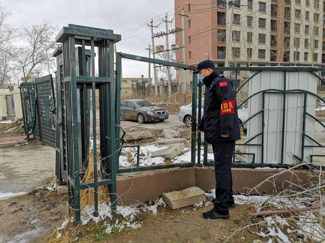 王丹和同组下沉队员马庆东、曹利伟执行巡逻任务,寻找小区需要修整、围堵的栅栏