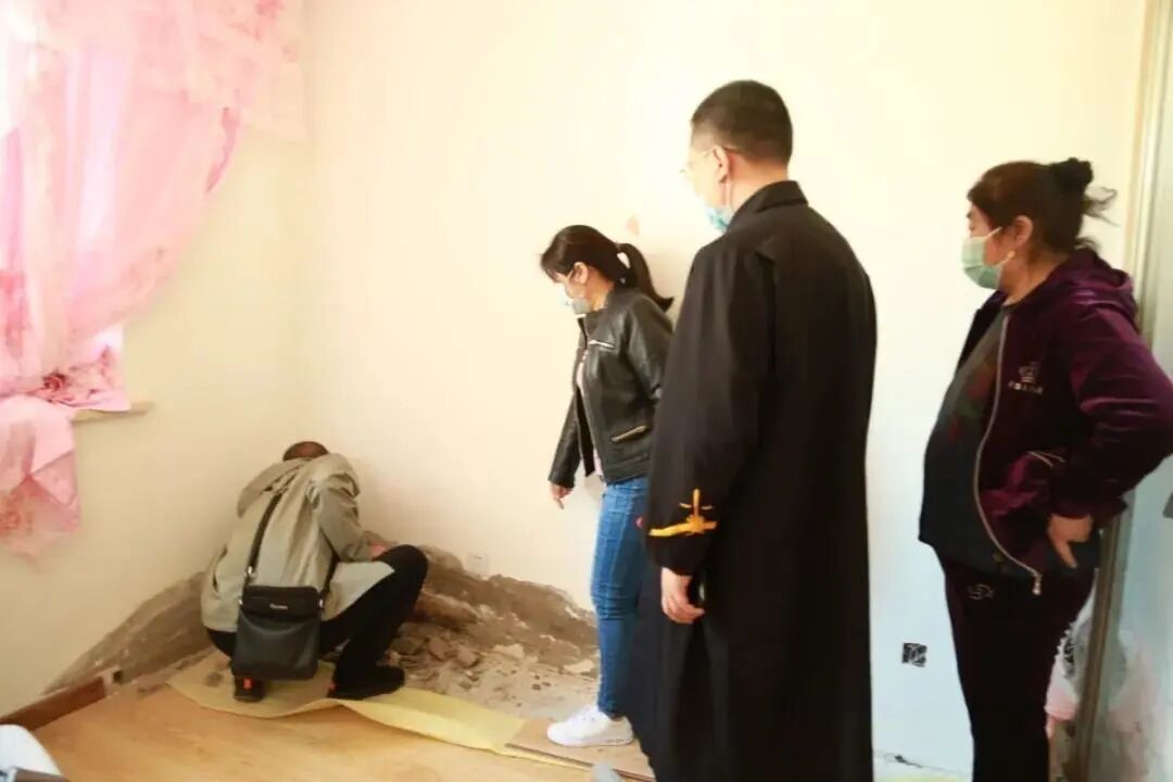 为了解具体漏水情况,孙晓峰带领书记员来到原告家中勘查现场,并特意找来从事水暖维修的专业人士,对三户进行逐一排查,寻找漏水点。与此同时,孙晓峰不断安抚各方当事人情绪,引导其妥善处理邻里关系,建议减少鉴定等诉讼成本,接受法庭调解。随后,孙晓峰采取“背对背”方式耐心向各方释法析理。