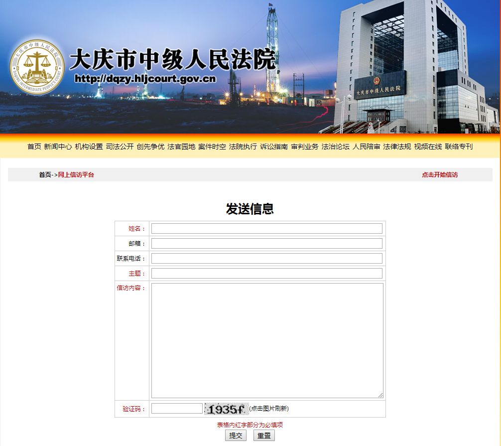 网络信访平台:http://dqzy.hljcourt.gov.cn/。