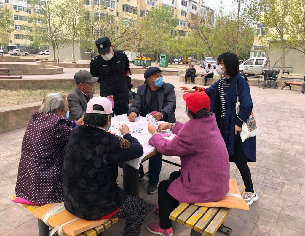 首先,掌握社区概况。晨曦社区共有24栋居民楼,共1000多住户,现存重点隔离一户。社区存在较难管理的“翻墙重灾区”“破拆重灾区”“人易聚集区”,需要我们扎实地开展各项工作,不能有任何疏忽和漏洞。其次,制定工作规划。除做好早、中、晚高峰时期配合卡口登记、扫码、测温等工作外,我们将每日巡查定为6次,包括外围巡查3次,主要检查外围栅栏是否遭到破坏,有没有翻墙人员等;小区内巡查3次,重点巡查居民楼下有无人员不戴口罩或多人聚集。第三,注重灵活应变。小区内聚集聊天、打牌的老人经劝散后常常折返,和防疫队打游击战,我们只好调整策略,先加入聊天队伍,再说说近期他省的增长病例和聚集的危险性。老人们见队员们一番好意,也明白我们比他们还要“固执”,最后都笑笑带着坐垫和扑克回家了。
