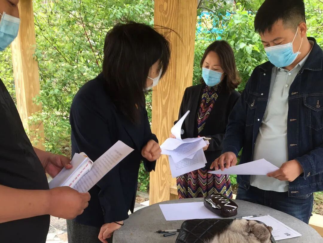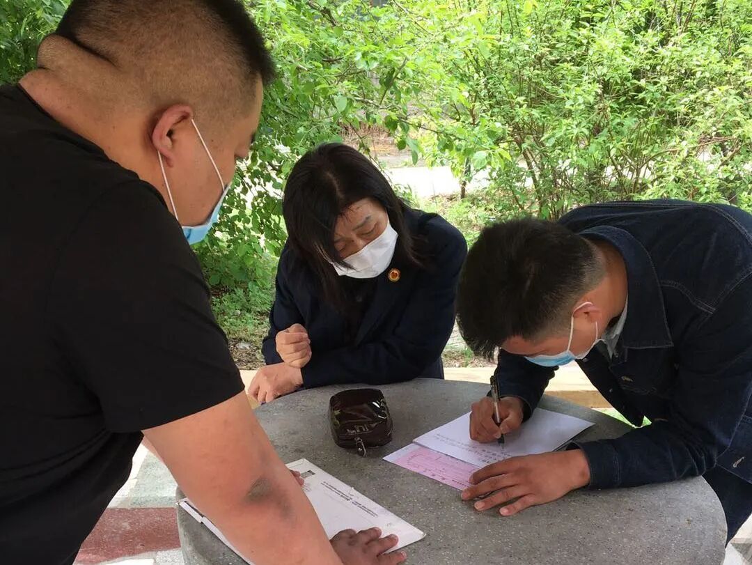 诉调对接•速裁中心主任李桐对此案高度重视,将案件交由优秀人民调解员涂江华办理。由于申请人在外地居住,根据疫情防控的需要,涂江华在保证安全的前提下,带领中心工作人员和双方当事人在法院外大街上的凉亭里进行了露天户外调解。