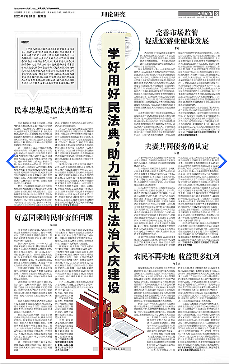 近日,市委政法委、市法学会联合市委宣传部、《大庆日报》(理论研究专版)策划开设民法典普法专栏,邀请市内法学专家学者、法官、检察官和律师解读民法典。