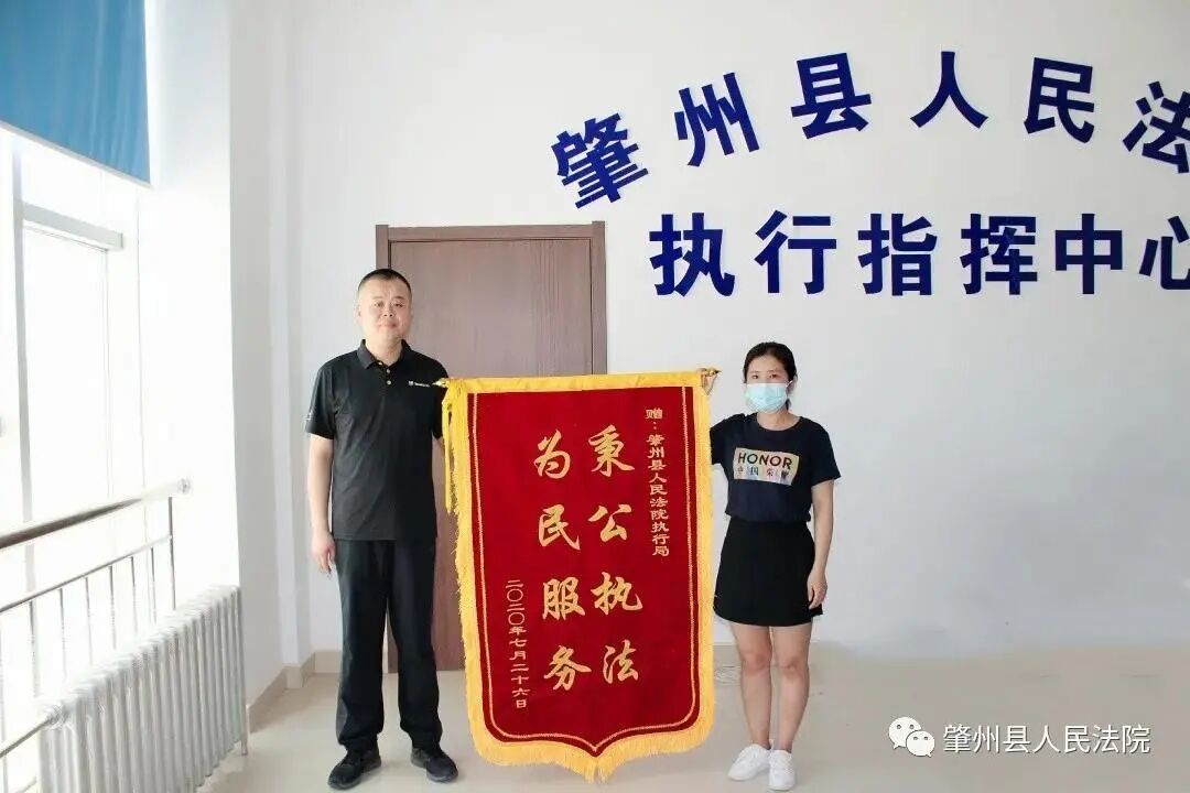 近日,申请执行人于某来到肇州县法院,送上一面绣着“秉公执法 为民服务”的锦旗,感谢执行法官帮助自己追索孩子的抚养费。