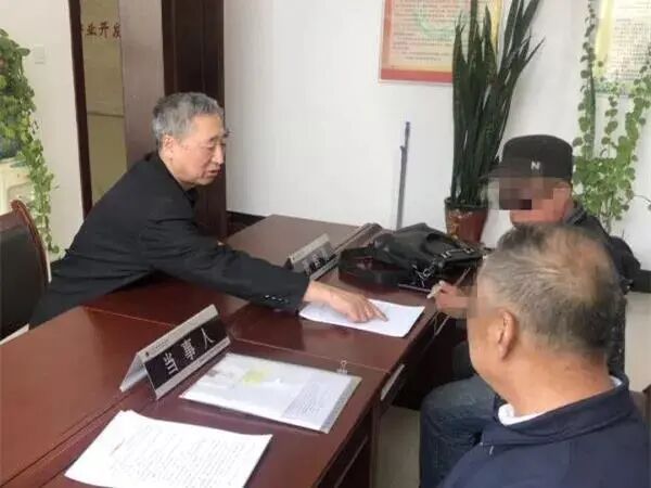 ▲ 高新区法院“老丁调解室”调解员丁树山进行案件调解