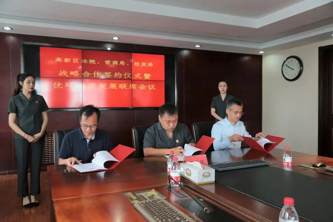 9月3日,高新区法院与高新区营商局、高新区经发局共同举行“高新产业调解室”揭牌仪式,并召开“优环境、促发展”联席会议。