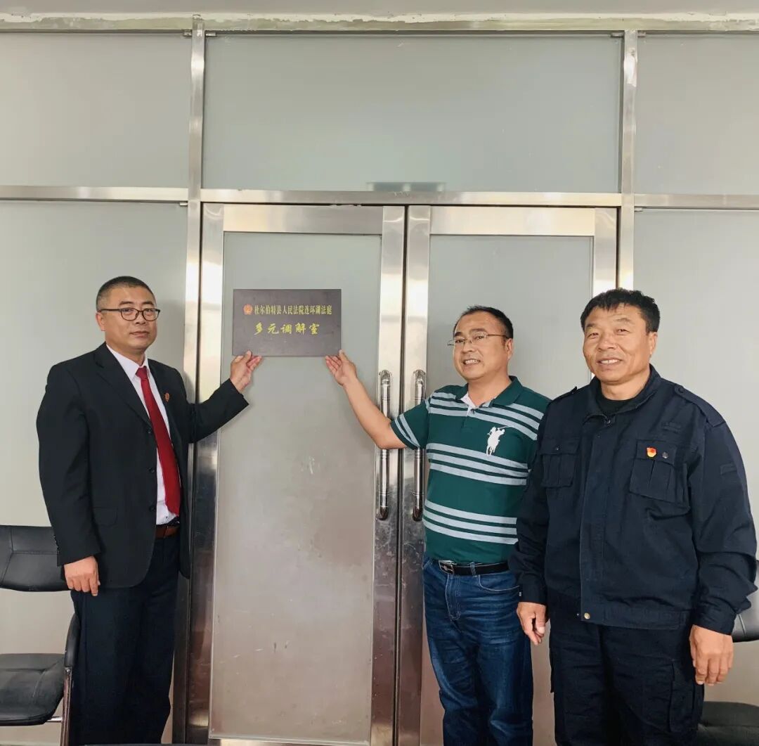 为深入落实习近平总书记“坚持把非诉讼纠纷解决机制挺在前面”的要求,扎实推进一站式多元解纷和诉讼服务体系建设,杜尔伯特蒙古族自治县人民法院连环湖法庭紧密结合审判实际、辖区居民特点及案件特点,积极争取敖林西伯乡党委、政府的领导和支持,设立敖林多元纠纷调解室,邀请敖林司法所调解委员会调解员、敖林乡人大代表、敖林乡政府经管中心干部及村委会主任,针对资源发包纠纷、土地流转纠纷、土地相邻纠纷及邻里纠纷进行多元调解。