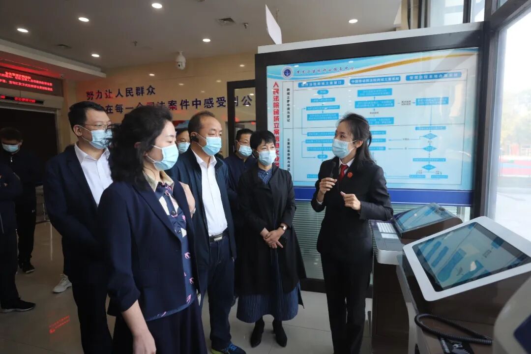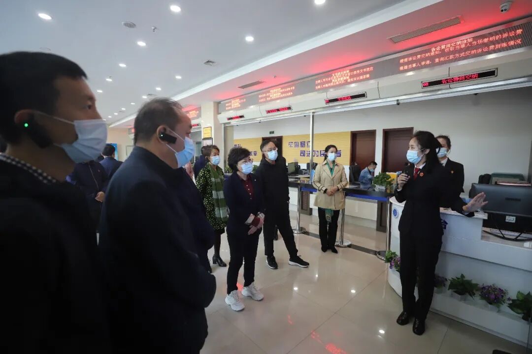 在讲解员的引领下,师生们先后参观了立案大厅、信访服务区、科技法庭、家事审判区、互联网法庭和荣誉室等场所。
