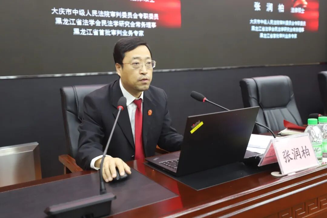参观过后,大庆中院专职审判委员会委员张润柏围绕《民法典》的主要内容,结合实际案例、针对社会关注和群众关心的热点,进行深入浅出给的讲解,为大家上了一堂普法课。