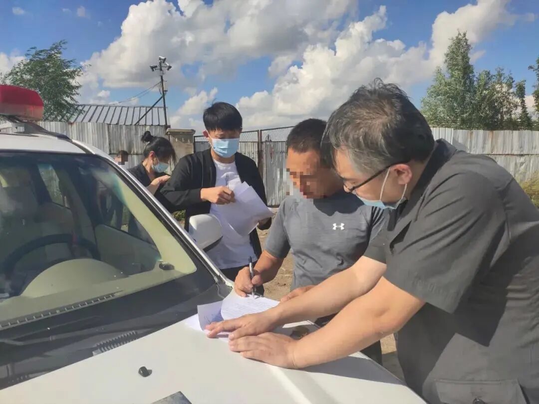 近日,他拉哈调解室了解到王某饲养奶牛的线索,通过“便衣侦查”的方式掌握了奶牛站的具体位置,由拉哈调解室负责人高虹带队、法官杜平主办本案,出动1台警车、一行4人争分夺秒赶到奶牛站。