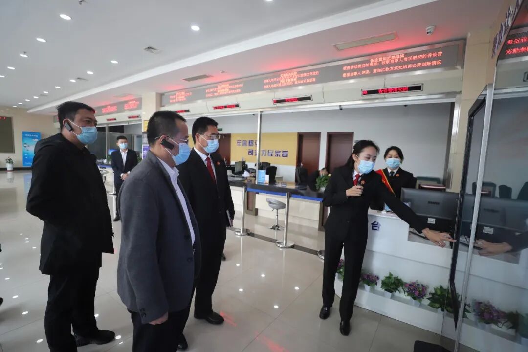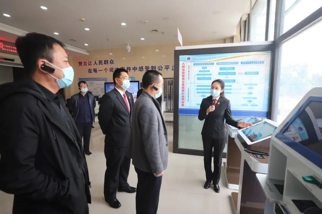 省委政法委信息中心一行实地调研诉讼服务中心、重大职务犯罪审判法庭、互联网法庭等场所,详细了解法院诉调对接、多元解纷工作的组织体系及审判、执行工作情况。