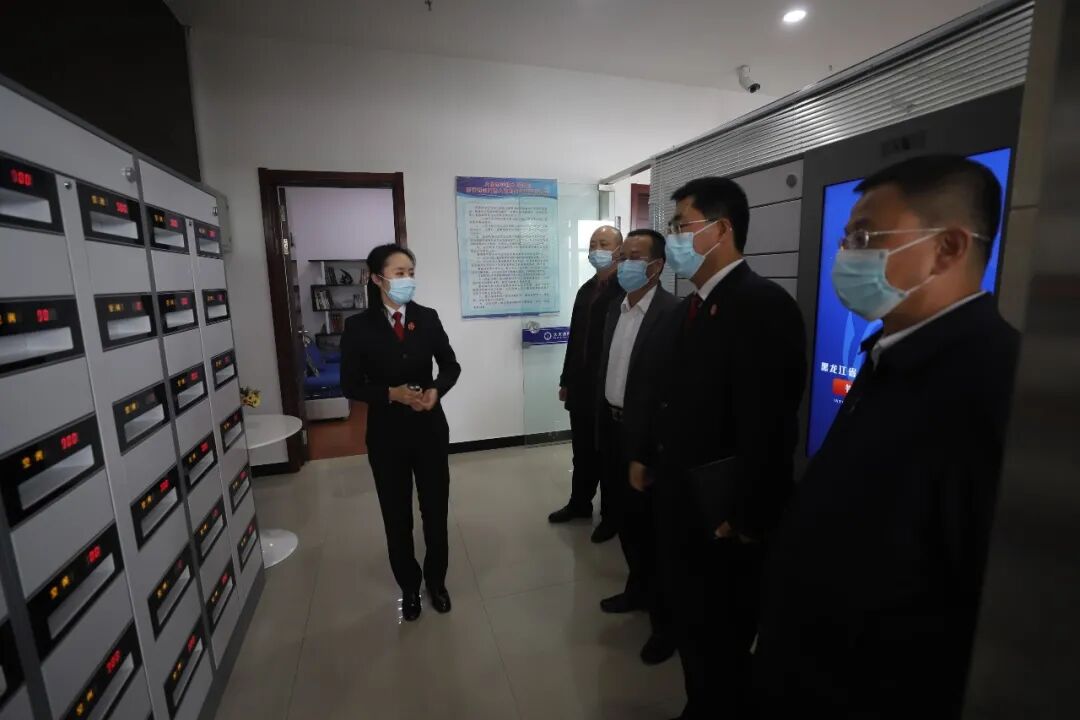 10月13日,黑龙江省委政法委信息中心主任彭德林一行4人深入大庆中院调研公检法业务协同平台及远程庭审系统建设。大庆中院党组副书记、副院长赵亮全程陪同。