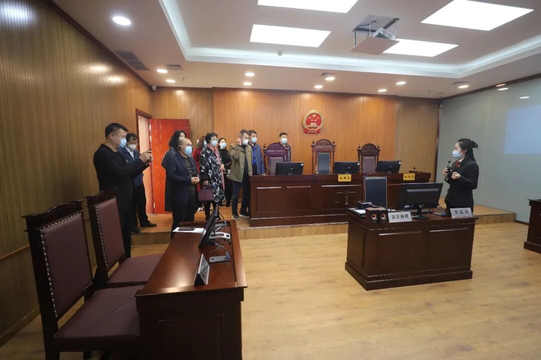 在讲解员的领导下,企业家代表先后参观安检大厅、信访服务区、立案服务区、十六法庭、家事法庭、互联网法庭、荣誉室、多功能活动室等场所,进一步了解了大庆中院立案、审判工作流程,司法为民服务措施以及近年来司法改革、信息化建设等方面取得的成果,切身感受浓厚的法治氛围。