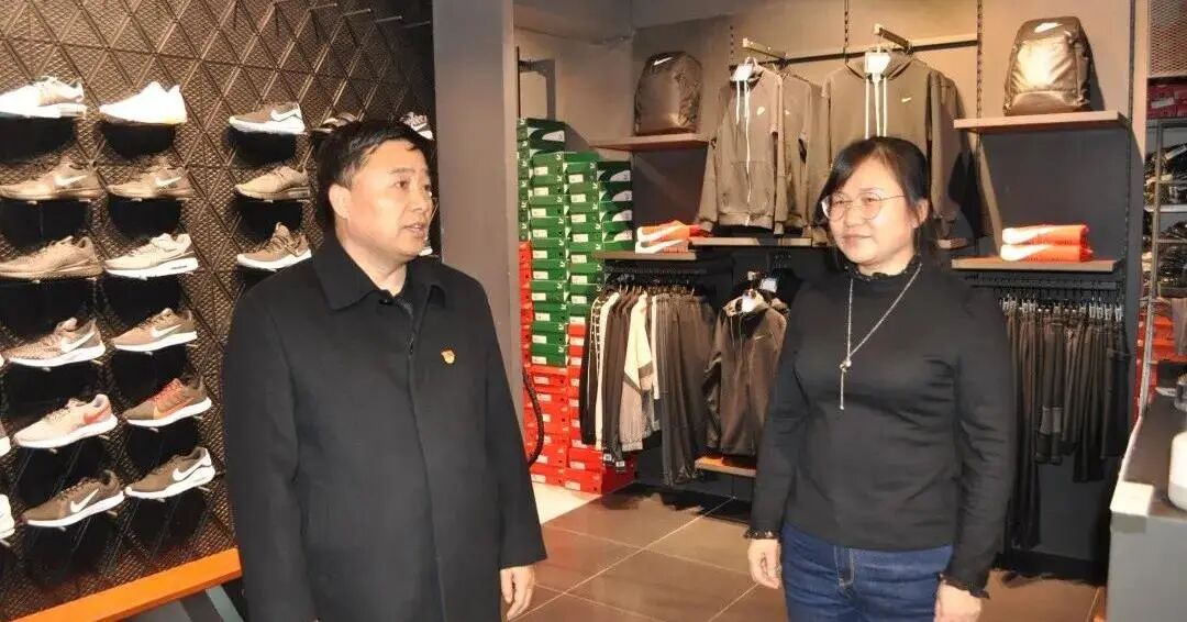 党组成员、政治部主任王国君对肇州县三力兄弟体育用品商店进行走访调研