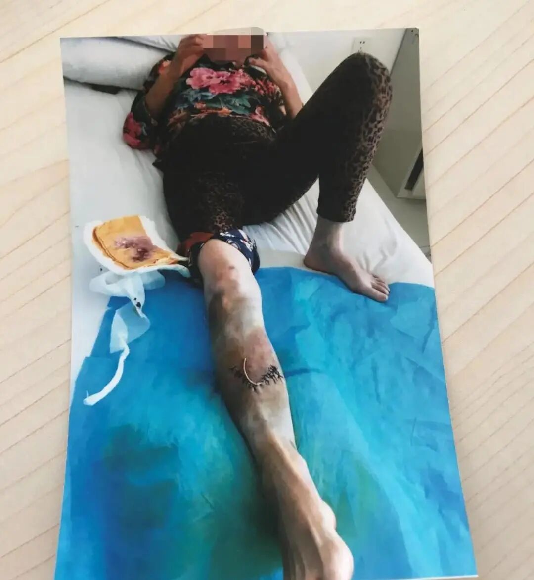 去年10月底,洪女士乘坐公交车时在上车的时候没站稳,磕了一下,撞到了右侧小腿正面。原本正常人磕一下都不会有啥大事,可是洪女士因为原本有基础性疾病,皮肤比较“脆”,这看似轻轻的一撞却引发了比较严重的后果,流血不止。自己没有感觉,在同车人的提醒下才发现,去医院缝了好多针,还住了十多天的院。