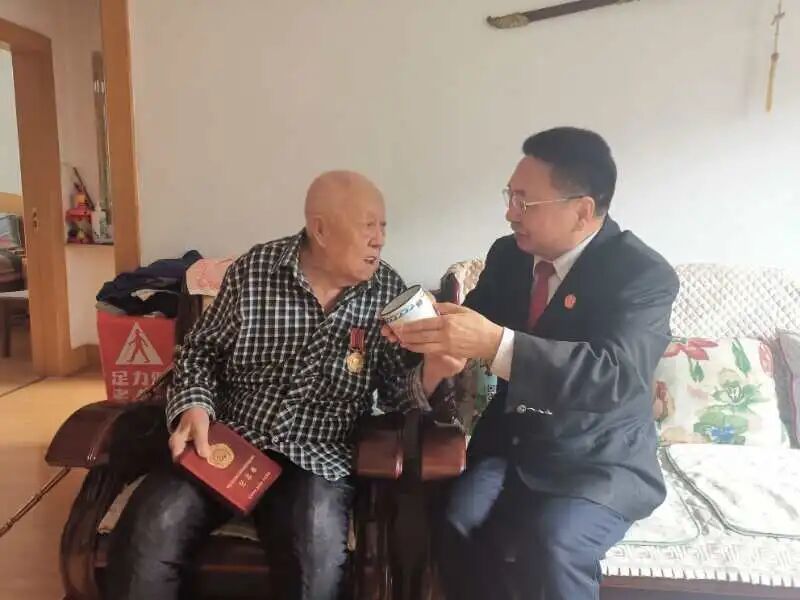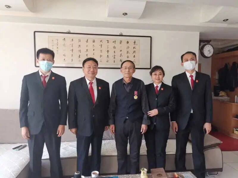 在庆祝中国人民志愿军抗美援朝出国作战70周年之际,大庆中院党组成员、政治部主任徐玉山代表党组书记、院长洛大雨走访慰问参加过抗美援朝的离退休干部,为他们颁发“中国人民志愿军抗美援朝出国作战70周年”纪念章,表达崇高敬意和真诚问候。