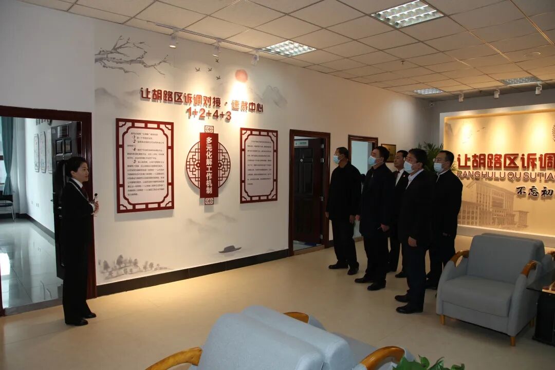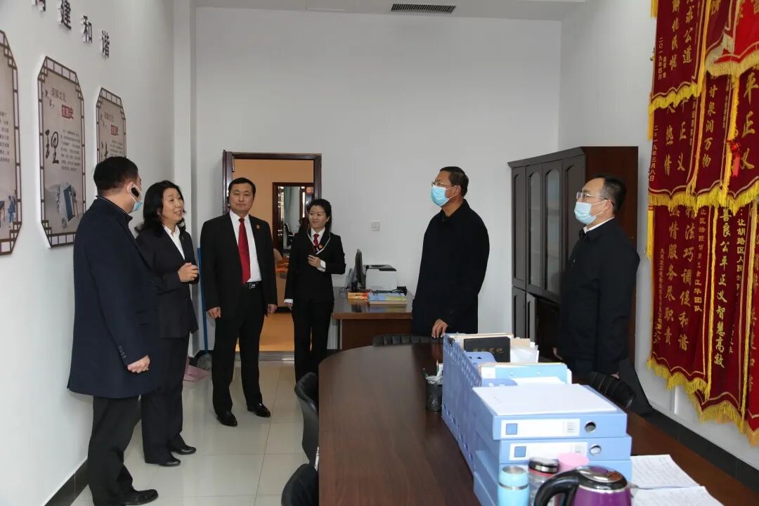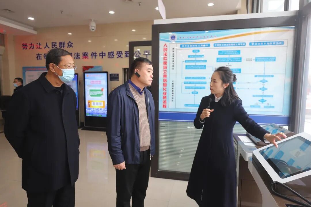 大庆中院党组书记、院长洛大雨休庭期间会见了调研组一行。大庆中院党组副书记、副院长赵亮陪同调研组考察了大庆中院诉讼服务中心、家事审判法庭、互联网法庭,到让胡路区法院诉讼服务中心实地调研,并与立案、商事、审监、执行等部门相关干警座谈,详细了解大庆两级法院在优化营商环境、“一站式”建设等当前法院系统重点工作的开展情况。