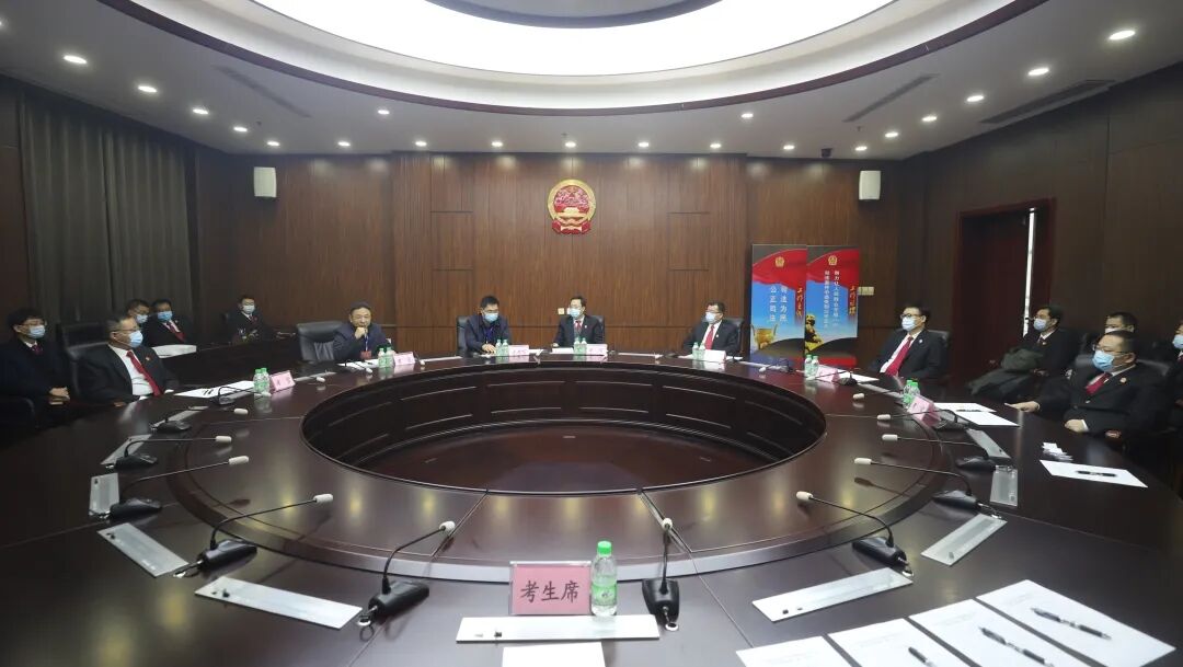 面试严格遵照省法院的考务要求,考生抽签决定面试顺序,各考场的法警引领考生到各自的备考室备考、预考室研读试题、面试考场进行答题,考试结束送出考区,完全采取封闭式路线,考风考纪严肃、考试秩序井然。