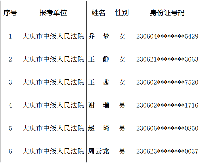 大庆中院公开招聘聘用制书记员拟进入体检及考察阶段人员名单公示